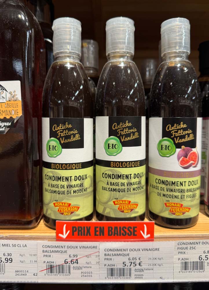 Au rayon des condiments, l’huile d’olive vierge extra Costel baisse de 0,39€, l’huile d’olive fruitée italienne Elisa de 2,16€, la crème de balsamique Monari Federzoni de 0,94€ et l’huile de coco vierge Maison du Coco de 0,45€.