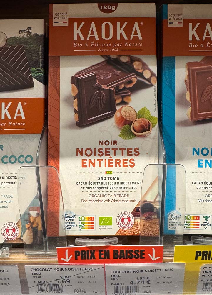 Les poires au sirop Bioloklock baissent de 0,30€ et la tablette de chocolat aux noisettes Kaoka d’1€ ; ne serait-ce pas l’occasion de cuisiner des poires Belle-Hélène ?