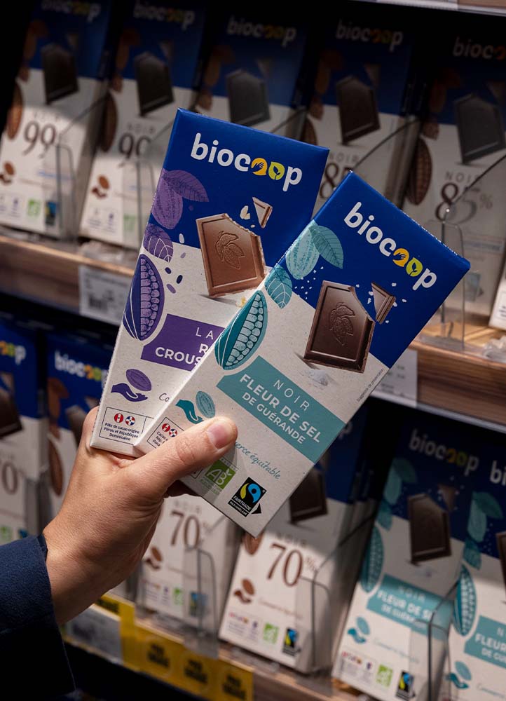 Unique, hautement exigeante et étendard des valeurs que nous défendons depuis toujours, notre marque Biocoop est le reflet d’un travail colossal consacré au développement de filières bio françaises et à la relocalisation de cultures sur notre territoire.