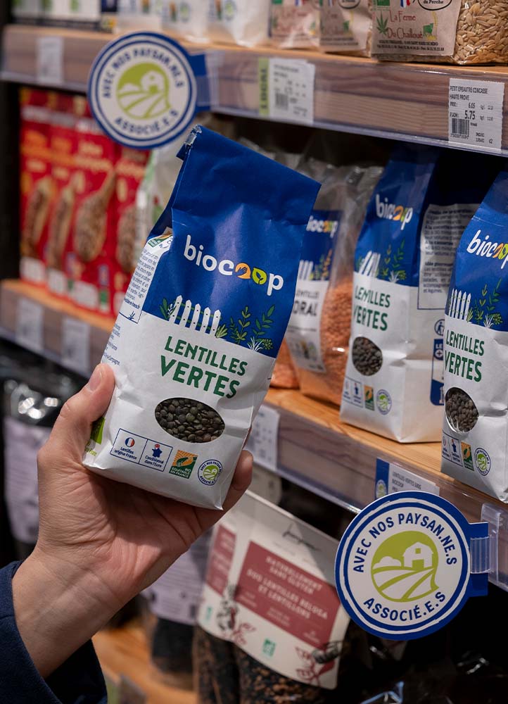 L’origine des ingrédients est clairement indiquée sur nos produits Biocoop et la majorité des matières premières est issue de nos groupements de producteurs et productrices bio, nos Paysan·nes Associé·es. 98% des produits sont fabriqués en France pour garantir traçabilité, proximité et transparence des approvisionnements.
