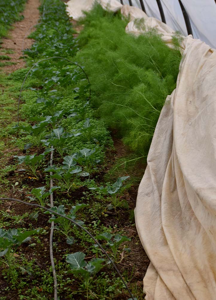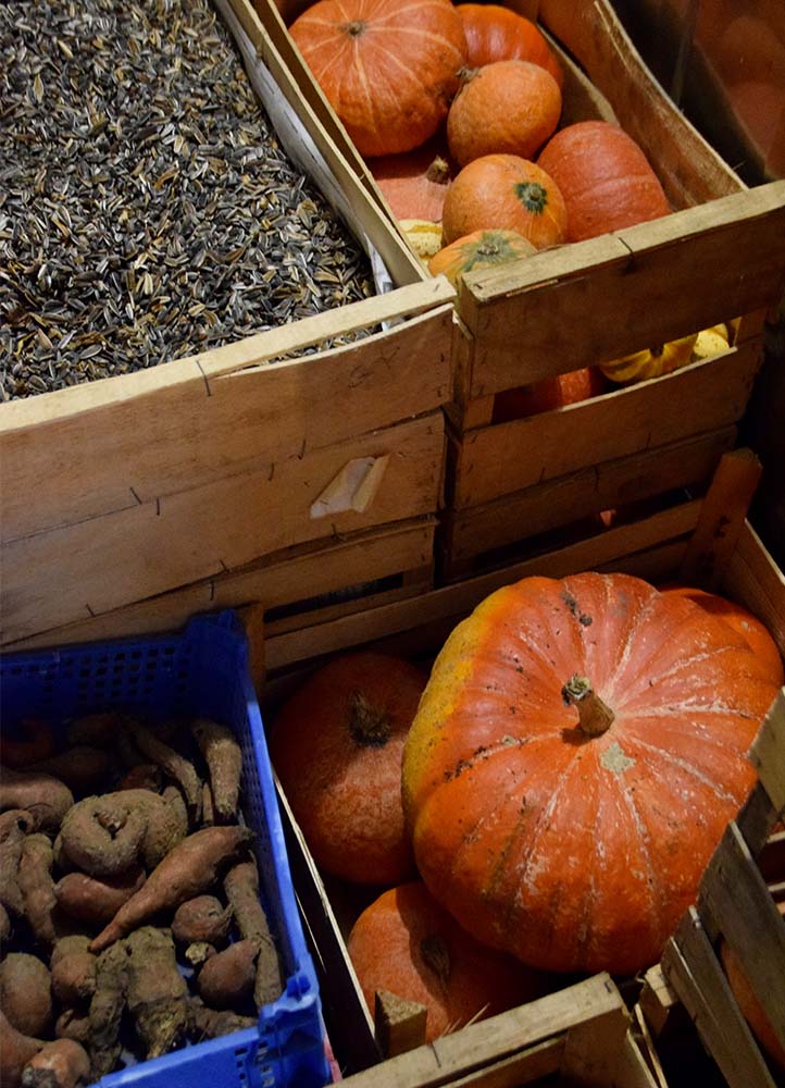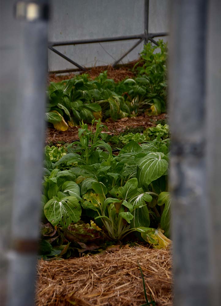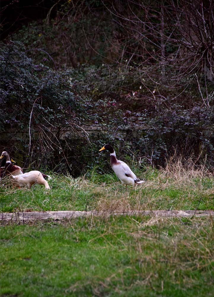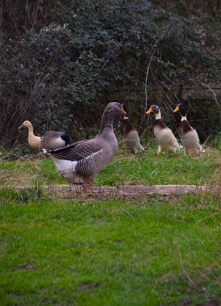 La ferme accueille également des oies et des canards coureurs indiens qu’Éloïse lâche entre les planches de culture et dans les 1000 m2 de serres pour dévorer les limaces ; « bon, ils aiment aussi beaucoup les salades et les pois mangetout, mais ce sont de merveilleux auxiliaires. »