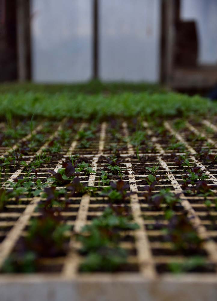 À ses débuts, Eloïse préparait ses propres plants en pépinière, mais elle s’est ensuite limitée à certains légumes pour diminuer l’utilisation des tables chauffantes, en particulier pour les aubergines, concombres, tomates, céleris-raves… et se libérer plus de temps.