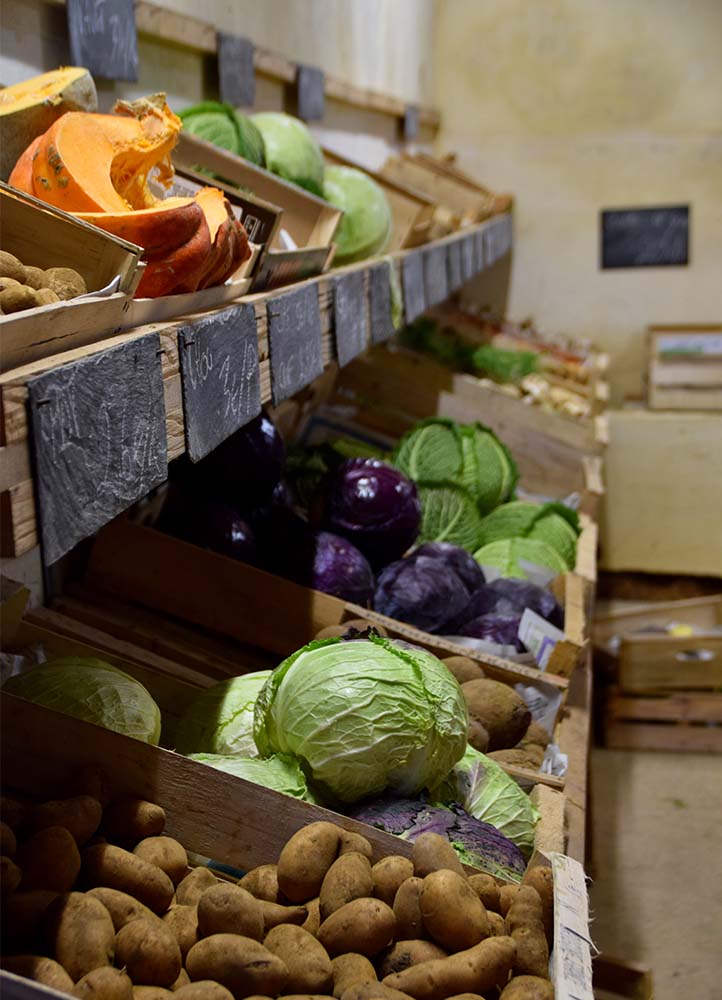 Elle s’installe en novembre 2016 sur un peu moins d’un hectare à quelques pas du château familial et est rejointe par son conjoint, Clément Sébille. Fils d’agriculteurs, il est en charge de l’atelier bovins sur la ferme et conduit en pâture une dizaine de vaches allaitantes, principalement de race normande.