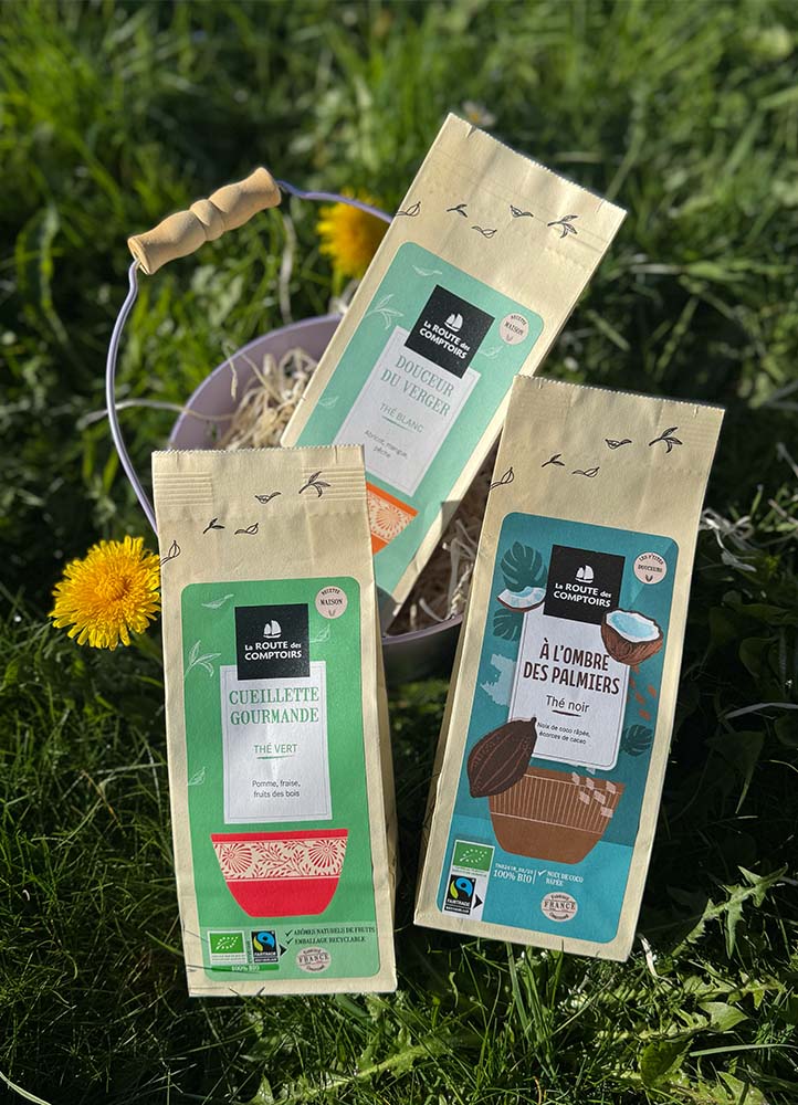Pour les plus grand·es, de jolies tablettes de chocolat noir ou au lait et trois tisanes à siroter au soleil :