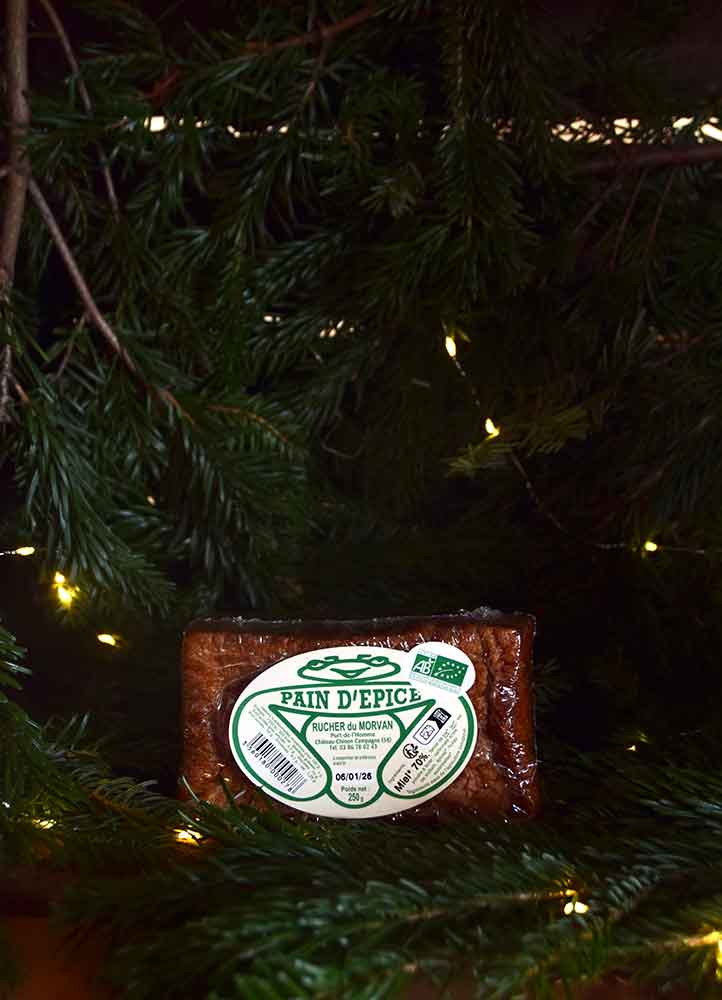 Nos nonnettes sont cette année fourrées à l’orange, à l’abricot et à la myrtille ; comme toujours, elles sont disponibles en quantités limitées. Et le prestigieux pain d’épices artisanal du Morvan, incroyablement fondant et composé de 70% de miel, est de retour en rayon. À déguster tel quel avec une tisane ou une infusion de Noël !