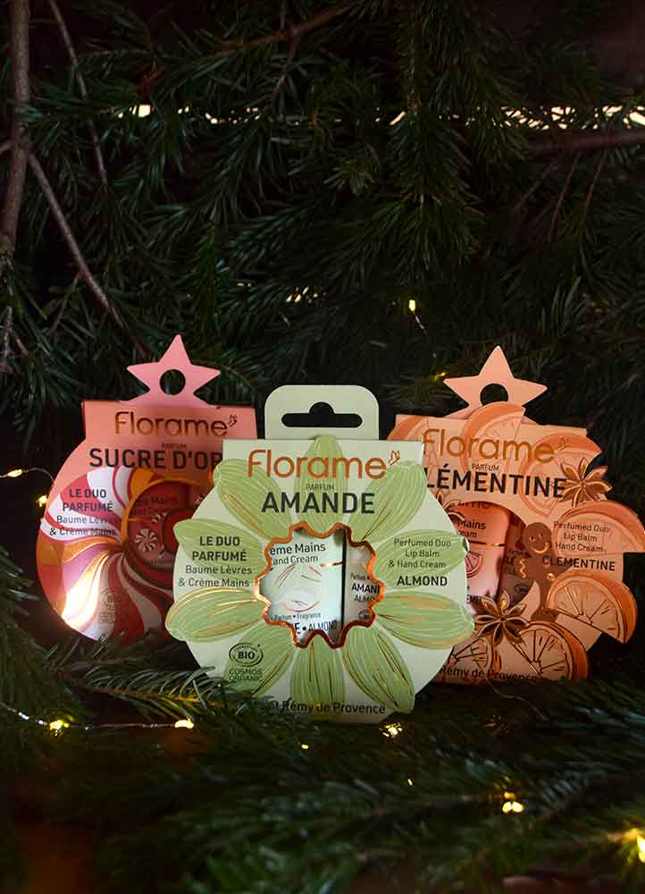 Florame nous propose trois superbes coffrets de duos parfumés, composés d’une crème pour les mains et d’un baume pour les lèvres : sucre d’orge, amande et clémentine. Des produits indispensables à toujours avoir sur soi en hiver et à suspendre dans le sapin en attendant Noël !