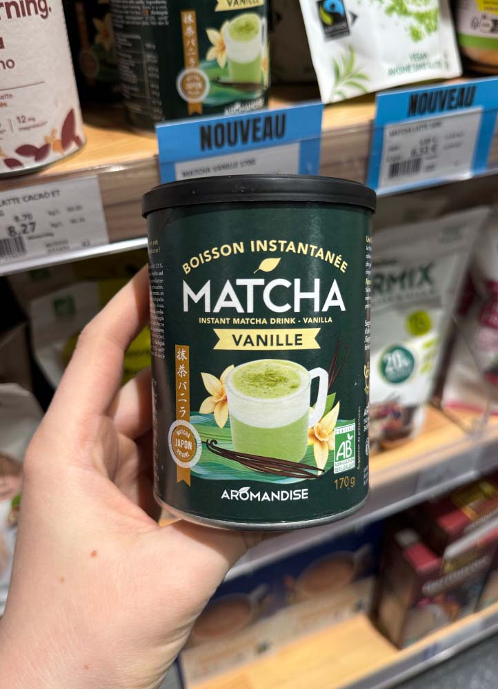- Un matcha à la vanille de Madagascar prêt à déguster, produit dans la région d’Uji où sont cultivés les thés les plus renommés du Japon