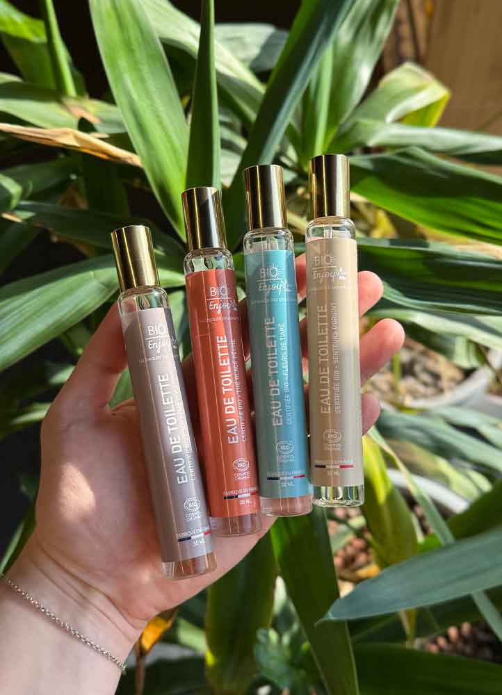 Enfin, les eaux de toilette Bio Enjoy aux fragrances légères et naturelles :