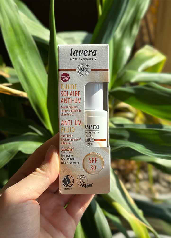 • Le fluide solaire SPF30 de Lavera, double protection UVA et UVB