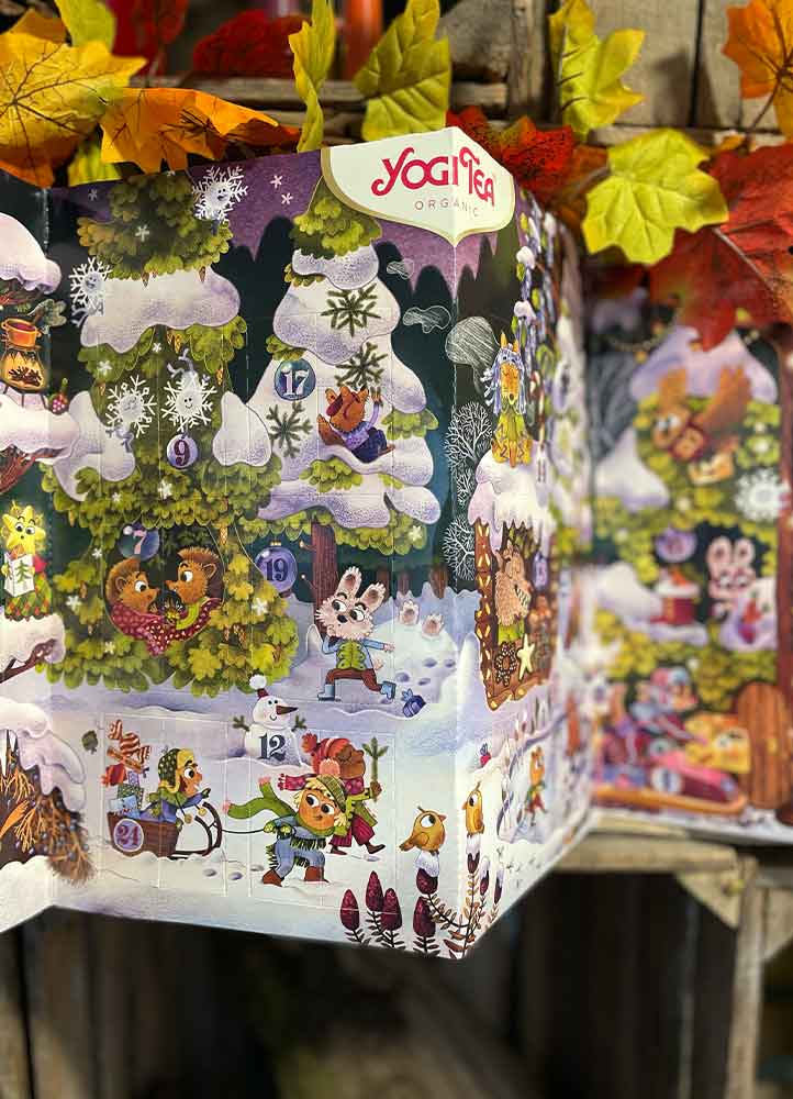 Vivez pleinement les émotions des fêtes et patientez jusqu’à Noël avec le superbe calendrier de l’Avent YogiTea et ses 24 sachets d’infusions, présentées sous forme d’éventail à exposer près de votre sapin ou sur le manteau de votre cheminée.